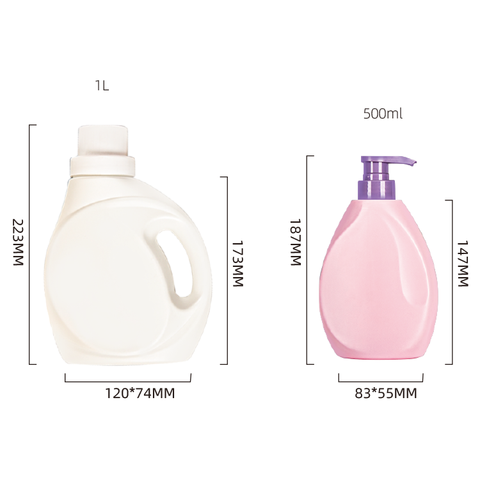 Sunripackカスタマイズされた1L & 500ml PEプラスチックボトルスクリューキャップ付き大容量ランドリー洗剤ローションボトルパック